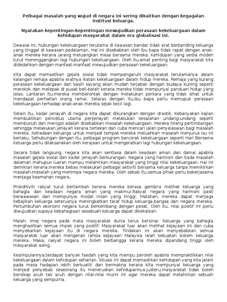 Pdf Penerapan Nilai Kekeluargaan Adakah Ianya Penting from i1.rgstatic.net 2.3 hubungan kekeluargaan unit 6: Kepentingan menjalinkan hubungan anggota keluarga merupakan orang yang penting dalam hidup kita. Hubungan kekeluargaan yang erat dan utuh akan dapat membangunkan keluarga yang bahagia dan mampu untuk menghindari daripada berlakunya masalah perpecahan keluarga. Dengan ini, hubungan kekeluargaan dapat diberkati dan dirahmati oleh yang maha esa. Hidup ini boleh diumpamakan seperti masakan, memerlukan rempah untuk membentuk rasa, memerlukan garam untuk perasa, memerlukan asam untuk sedikit rasa masam,dan gula untuk memberi kemanisan dalam masakan. Dewasa ini, hubungan kekeluargaan terutama di kawasan bandar tidak erat berbanding keluarga yang tinggal di kawasan pedalaman. Ungkapan slogan rumahku, syurgaku memanifestasikan kepentingan keluarga kepada kita yang aktiviti kekeluargaan vital kerana dapat mewujudkan suasana yang bahagia sesama ahli keluarga dan juga mengeratkan ikatan silaturahim. Justeru, kerjasama antara ahli keluarga amat penting untuk mengeratkan hubungan.