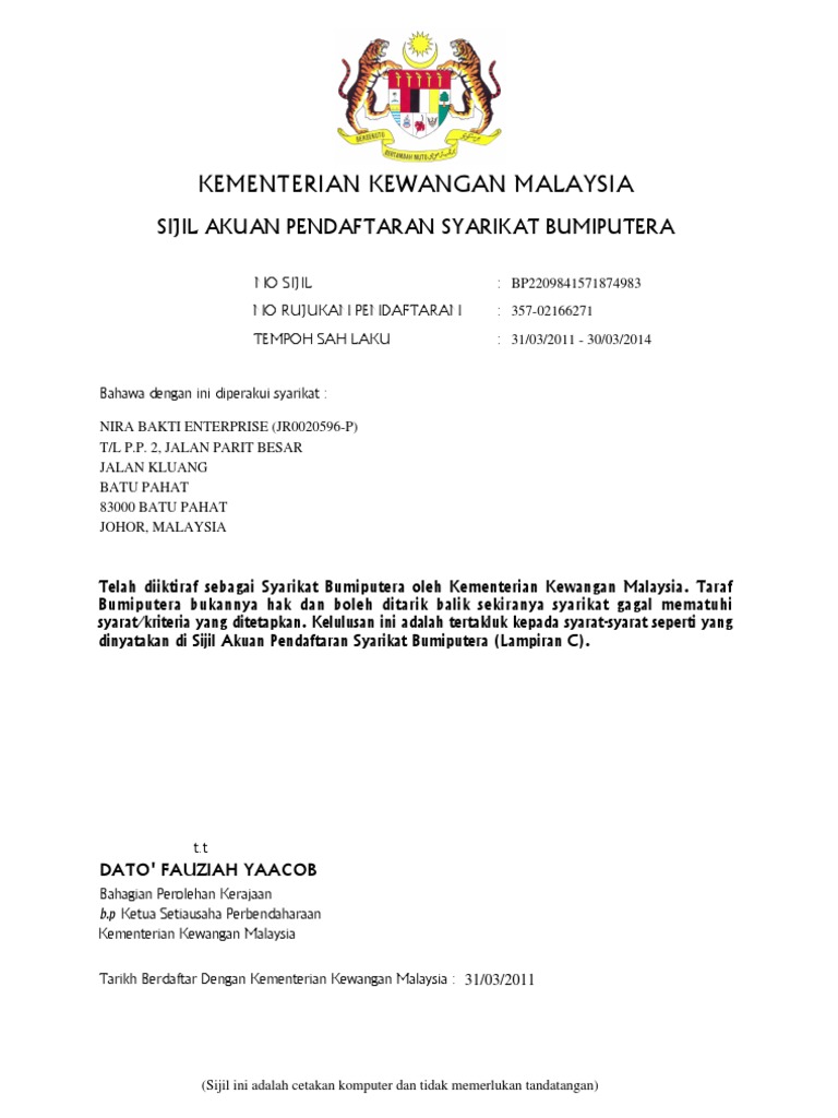 Perlu dilengkapkan untuk pendaftaran yang berkaitan) * no pendaftaran kementerian kewangan (mof) : Rujukan yang diperolehi melalui emel yang diterima oleh wakil syarikat Contoh pendaftaran syarikat bumiputera therace enterprise. Assalamualaikum, saya saja nak share, sebab saya sendiri tak tahu sebelum ni, nak semak dekat mana. Sila klik pada pautan berikut untuk menyemak nombor pendaftaran syarikat baru bagi syarikat, perniagaan dan perkongsian liabiliti terhad yang didaftarkan pada dan selepas pelaksanaan format baharu, ssm akan memperuntukan.